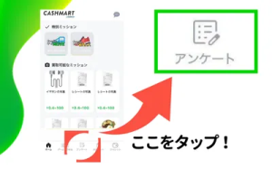 CASHMARTでは、アンケート回答もポイントに変わる! まずは「初回アンケートに答える」に回答して、あなた宛のアンケートをアンロック! 翌日以降にあなた宛のアンケートが届きはじめます。